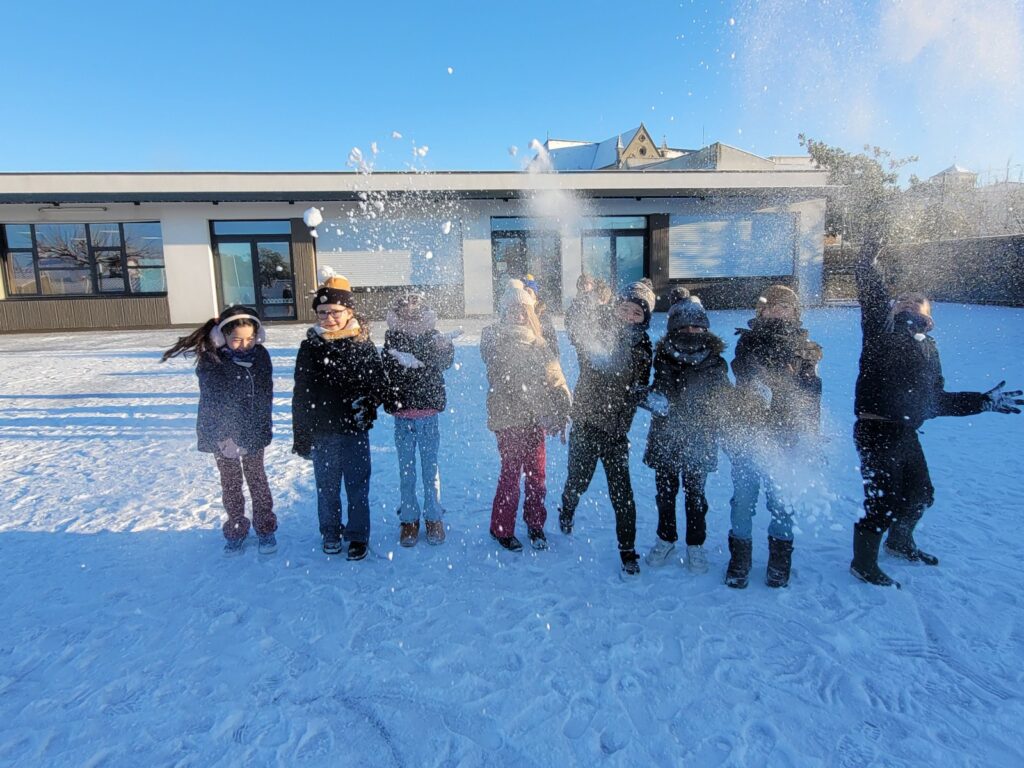 La neige s’est également invitée à l’école et est venue recouvrir la cour d’un joli manteau blanc, pour le plus